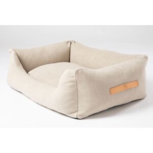 Das HENRI Cotton Dog Bed nutzt einen Außenbezug aus langlebiger, kuschelig weicher und widerstandsfähiger Baumwolle, die Innenfüllung besitzt antibakterielle Eigenschaften – waschbar in der Maschine ist das süße Bettchen, das optisch ein wenig einem Mini-Sofa ähnelt, ebenfalls bei bis zu 30°C.